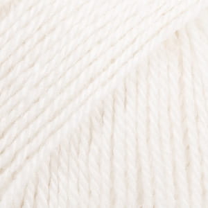 SŁOWNY OPIS KOLORU: Biały o ciepłym odcieniu, włóczka powstaje z wybielanej wełny, lecz nie jest śnieżnobiała, kolor jest jednolity
