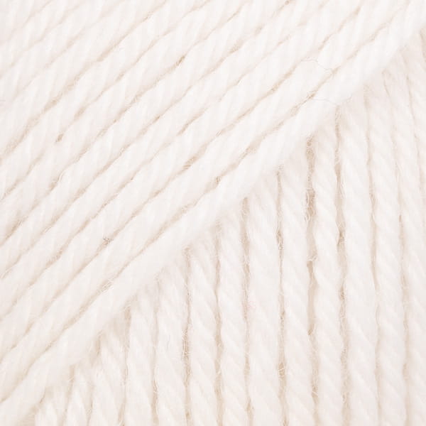 SŁOWNY OPIS KOLORU: biały, włóczka powstaje z bielonego runa, kolor jest jednolity