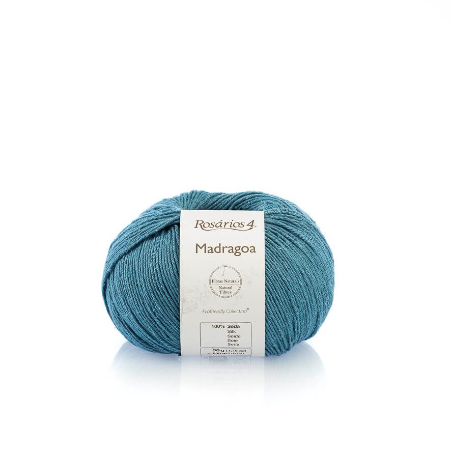Włóczka Madragoa pochodzi od portugalskiego producenta Rosarios 4 i jest częścią ich kolekcji przyjaznej dla środowiska. Surowy jedwab bourette, z którego powstaje włóczka Rosarios 4 Madragoa, wytwarzany jest z wyczesanych i ponownie przetworzonych kokonów jedwabnika morwowego po tym jak dorosłe owady już je opuściły. Recyklingowane włókna jedwabne są dość krótkie, ich struktura jest nierówna, a nowo uprzędziona włóczka pozostaje rustykalna, matowa, lekko guzełkowata i tweedowa - wygląda więc nieco inaczej niż produkt, który wyobrażamy sobie mają na myśli jedwab, ale na szczęście nie ma to wpływu na wspaniałe właściwości użytkowe tej przędzy.