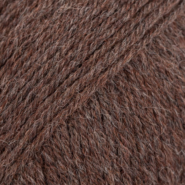SŁOWNY OPIS KOLORU: średni brąz, niejednolity kolor stanowiący mieszaninę jaśniejszych i ciemniejszych odcieni, w dzianine tworzy efekt bardzo subtelnego melanżu